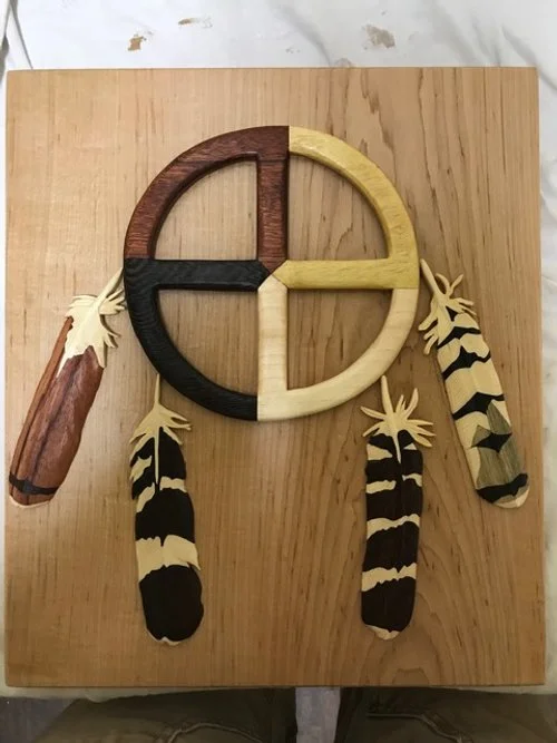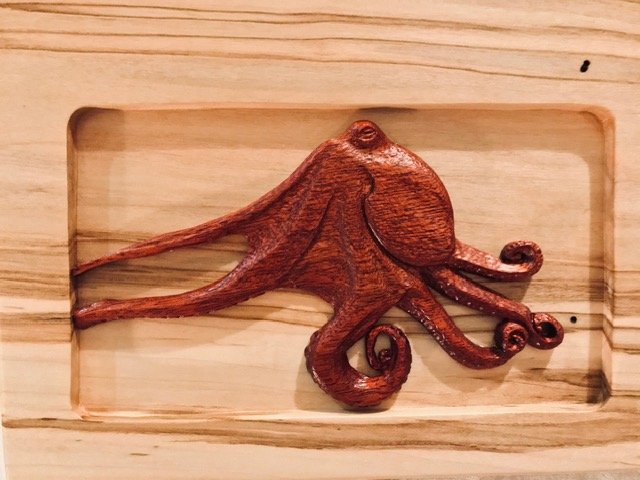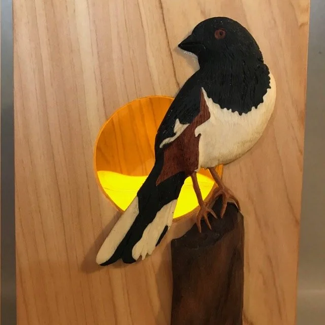 This all started because I wanted to carve a whale and wanted it to have more than one color. I started fiddling with cutting out parts like a puzzle and fitting them together and before I knew it, I was essentially painting with wood. 10 years later and I’m back in the shop ofter a short period of renovating a house, then building a woodshop and renovating another house and then realizing that will never be finished so I may as well carve. I now have a long list of animals I’d like to carve and a perfect little shop full of spiders and roly poly bugs (they are actually crustaceans) for company.